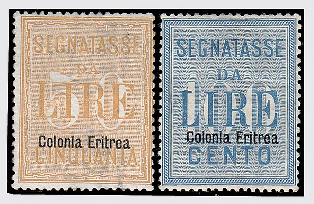 ERITREA - 1903, Segnatasse, grande formato 2 valori cpl. (12/13). (Cert....