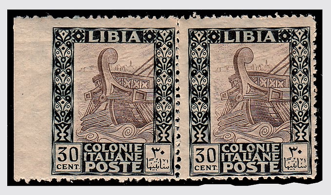 LIBIA - 1924, Pittorica 30 c. non dentellato a sinistra (50s) in coppia con...