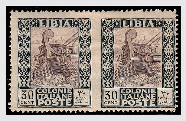 LIBIA - 1924, Pittorica 30 c., coppia orizzontale non dentellata al centro...