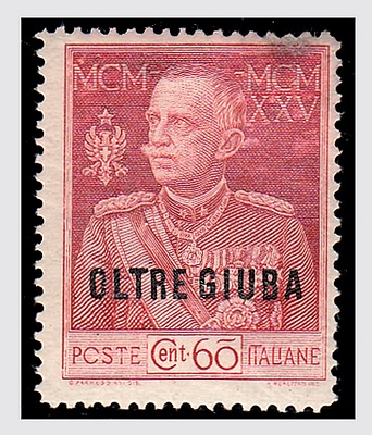 OLTREGIUBA - 1925, Giubileo, 60 c. carminio dentellato 13 1/2 (21) difettoso per assottigliamento in alto. (Cert. Caffaz).(GOMMA ORIGINALE)