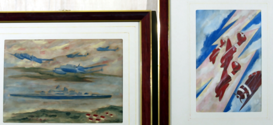 A) "Aerei", dipinto ad olio su carta povera, cm. 16,7x23,9, firma in basso a sinistra. B) "Aerei", dipinto ad olio su carta povera, cm. 20,3x13,4, firma in basso a destra.