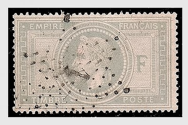 FRANCIA - 1869, Napoleone laureato 5 f. grigio azzurro (33a). (Em. Diena,...