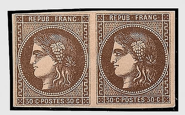 Lotto 5308 | FRANCIA - 1870, Bordeaux, 30 c.bruno (47) coppia.(GOMMA ORIGINALE)