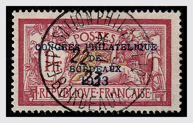 FRANCIA - 1923, Congresso di Bordeaux, 1 fr. vinaceo e oliva (182). (Cert.Caffaz).(USATO)