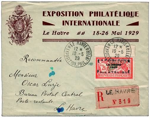 FRANCIA - 1929, Le Havre 2 f. (257A) su raccomandata da Le Havre per città il...