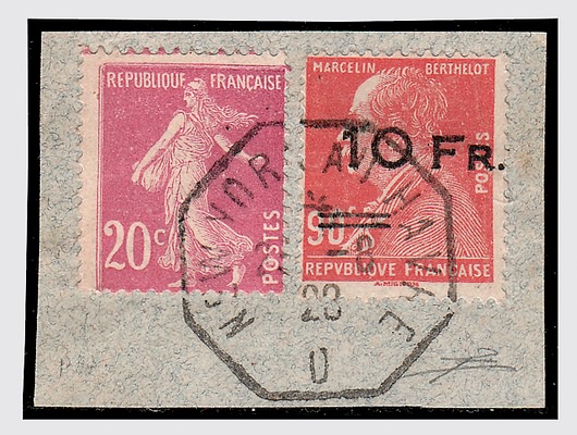 Lotto 5345 | FRANCIA - 1928, Posta aerea, "Ile de France" 10 f. su 90 c. (3) +...