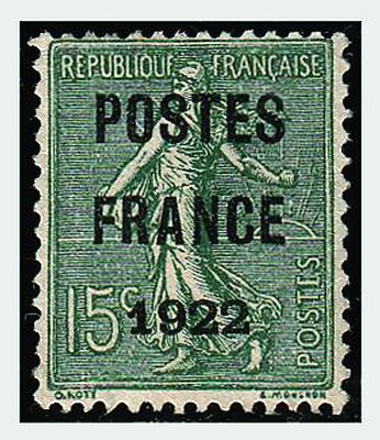FRANCIA - 1920-22, Preannullati, 15 c. verde oliva soprastampa "Postes Paris...