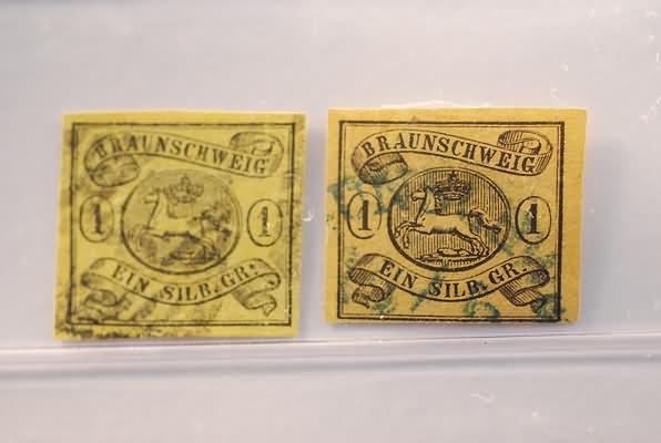 ANTICHI STATI TEDESCHI - 1853-65, BRUNSWICK, Stemma 1 s. nero su giallo (7) e nero su giallo bruno (7a).(USATO)