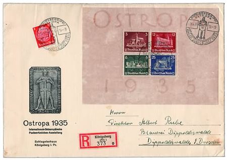 GERMANIA IMPERO E REICH - 1935, Foglietti, "OSTROPA" (3) su busta...