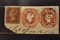 GRAN BRETAGNA - 1848, Embossed, 10 p. bruno rosso (6) 2 esemplari, rifilati lungo i margini + 1 p. bruno rosso (3) su piccolo frammento.(FRAMMENTO)