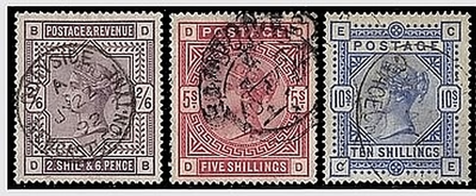 GRAN BRETAGNA - 1883-84, Alti valori, 2,6 violetto, 5 s.carminio, 10 s.azzurro (86/88).(USATO)