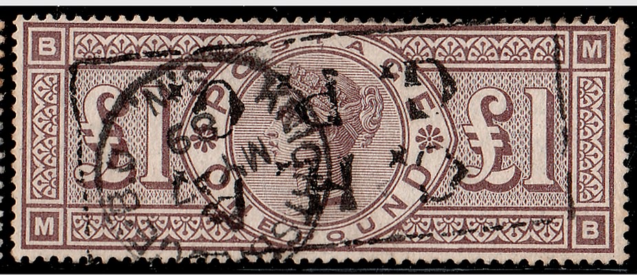 GRAN BRETAGNA - 1888, Vittoria, 1 sterlina bruno lilla, filigrana 3 globi...