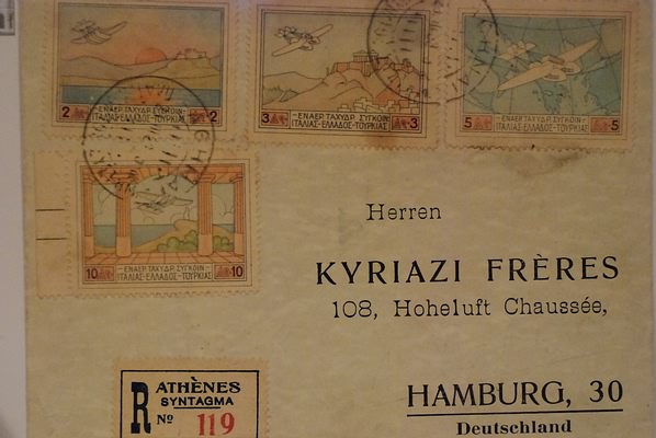 GRECIA - 1933, Posta aerea, aerogramma da Atene per Amburgo, 29/3/33, affrancato con la serie cpl. (A.1/4) + 2 complementari al verso.(LETTERA)