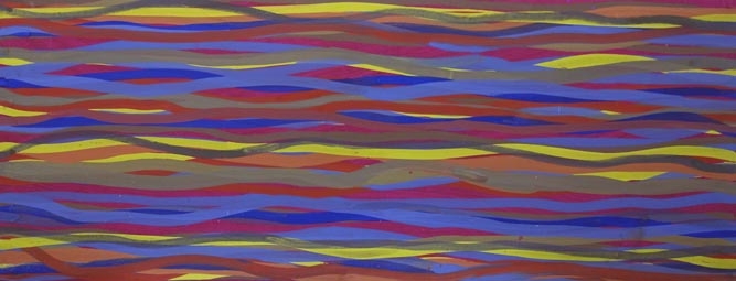 "Tangled bands" 2003 Gouache su carta cm. H: 28 L: 74 Etichetta al retro di una foto della Galleria "Alfonso Adriatico" con numero d'Archivio 012272. Autentica dell'autore su foto.