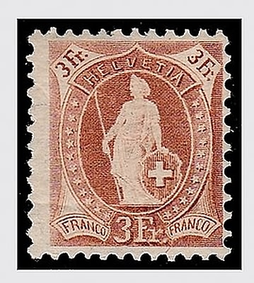 SVIZZERA - 1905-06, Helvetia in piedi 3 f. bistro (99).(GOMMA INTEGRA)