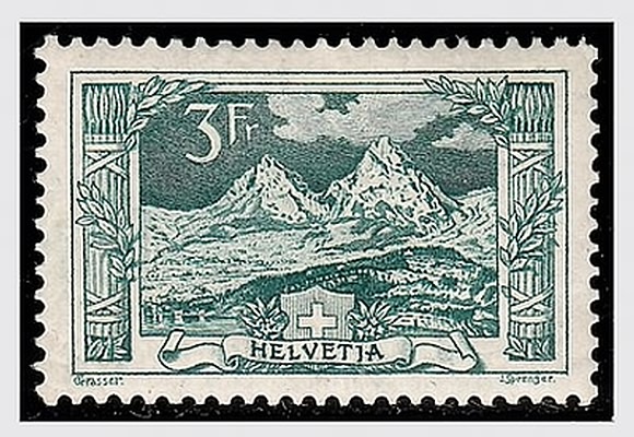 SVIZZERA - 1914, Vedute, 3 fr. verde (142). (Cert. Caffaz).(GOMMA INTEGRA)