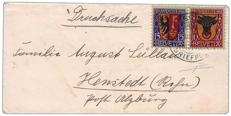 SVIZZERA - 1918, Pro Juventute, 2 valori (168, 169) su bustina da Rorschach,...