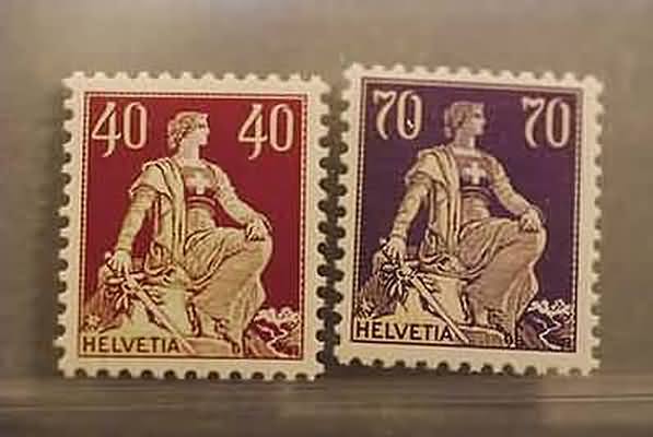 SVIZZERA - 1924-25, Allegoria, 2 valori cpl. con carta goffrata...