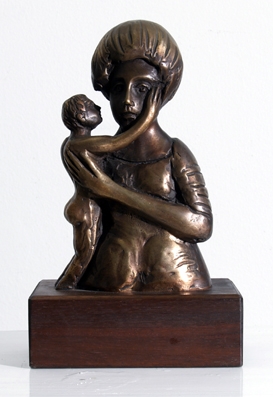 "Maternità" 1984 Scultura in bronzo, fusione in bronzo a cera persa con tiratura cm. H: 23 Firma e tiratura alla base. Certificato di autenticità su foto rep. 4381 della Galleria Pace (Mi).