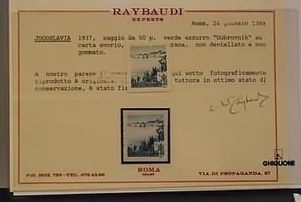 YUGOSLAVIA - 1937, Saggio non adottato da 50 p. verde azzurro con veduta di Dubrovnik, non dentellato e non gommato. (Cert Raybaudi).(SENZA GOMMA)