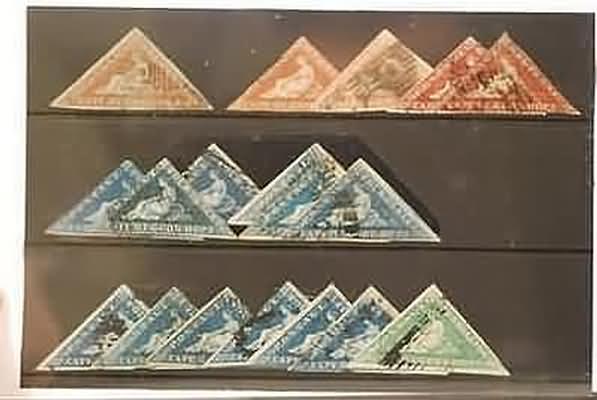 COLONIE INGLESI - 1853-63, CAPE OF GOOD HOPE, lotto di 18 triangolari (5 da 1 p., 12 da 4 p., 1 da 1 sh.) assortiti e di qualità mista. Da esaminare.(USATO)