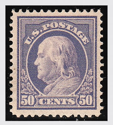 STATI UNITI - 1912, Franklin 50 c. violetto (Unif. 268 - Yv. 193A) ben centrato. (Cert. E. Diena).(GOMMA ORIGINALE)
