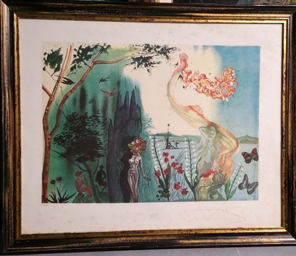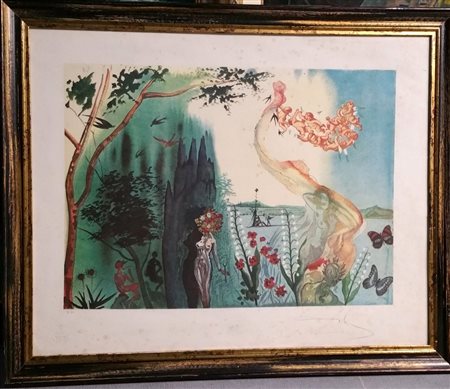 Salvador Dalì "Paesaggio surreale" litografia su carta cm 50x70 Firma...
