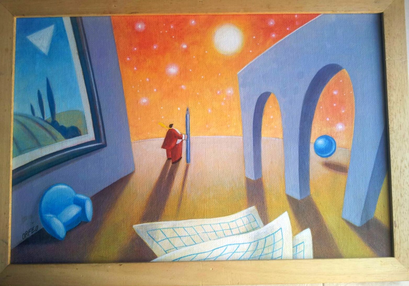 Lotto 63 | Orfeo "Il pensiero matematico" olio su tela cm 40x60 Autentica L'ALFIERE ARTE-TO