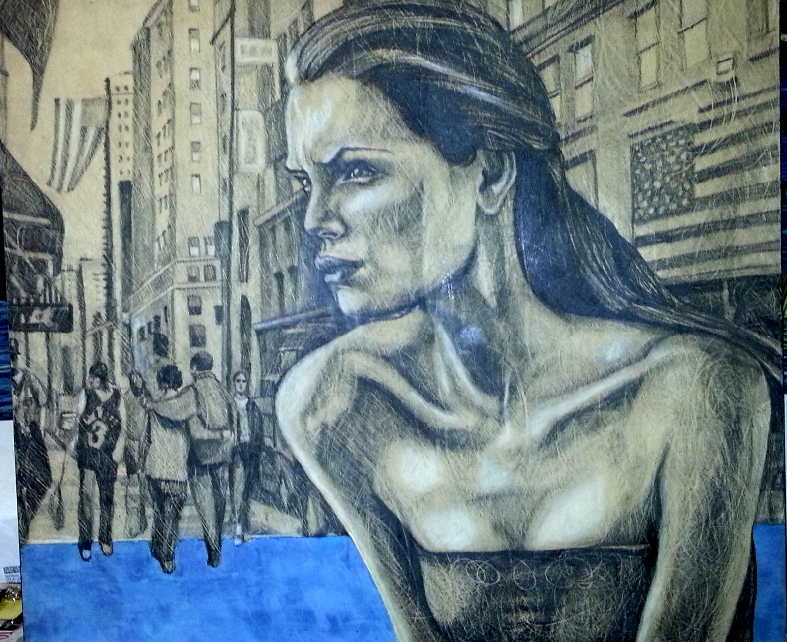 Luca Zampetti "Non era Noa" encausto e grafite su tavola cm 70x80 autentica ed archivio dell'artista al retro