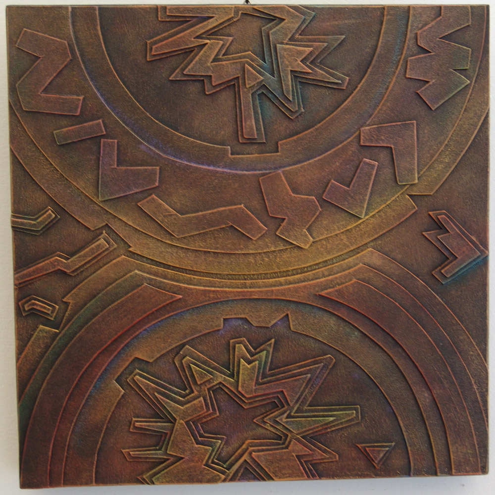Attilio Lauricella "Frammenti di pensieri nelle ore del giorno" Bassorilievo su tavola in cartone pressato effetto bronzeè cm 40x40x5 Autentica dell'artista su foto
