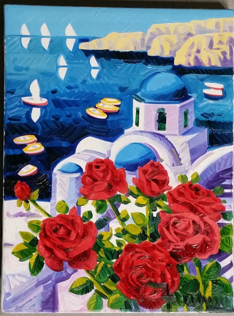 Athos Faccincani "Le rose rosse e la cupola blu" 2011 olio su tela cm 40x30 autentica dell'artista su foto