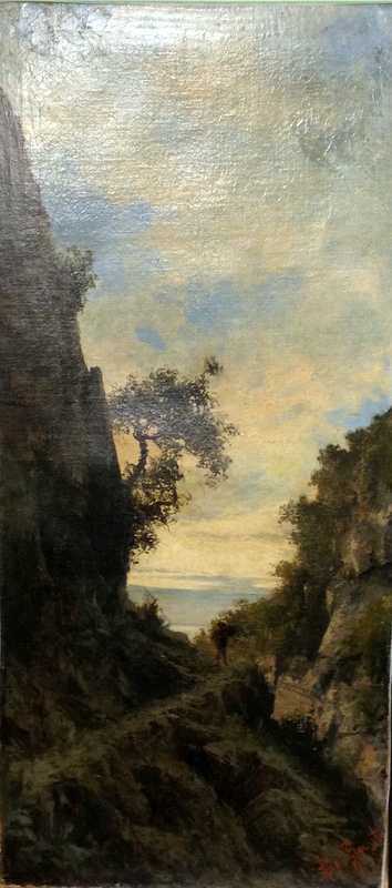 Giacinto Bo "Paesaggio ligure" olio su tela cm 129x60 Firma in basso a dx e...