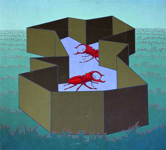 Francesco Casorati "Prigionieri" anno 1985 acrilici su tela cm. 150x140 Opera esposta a Palazzo dei Diamanti di Ferrara mar-apr 1985 e pubbl. a pag. 51 Catalogo mostra - Autentica su foto Galleria L'Alfiere Arte-TO