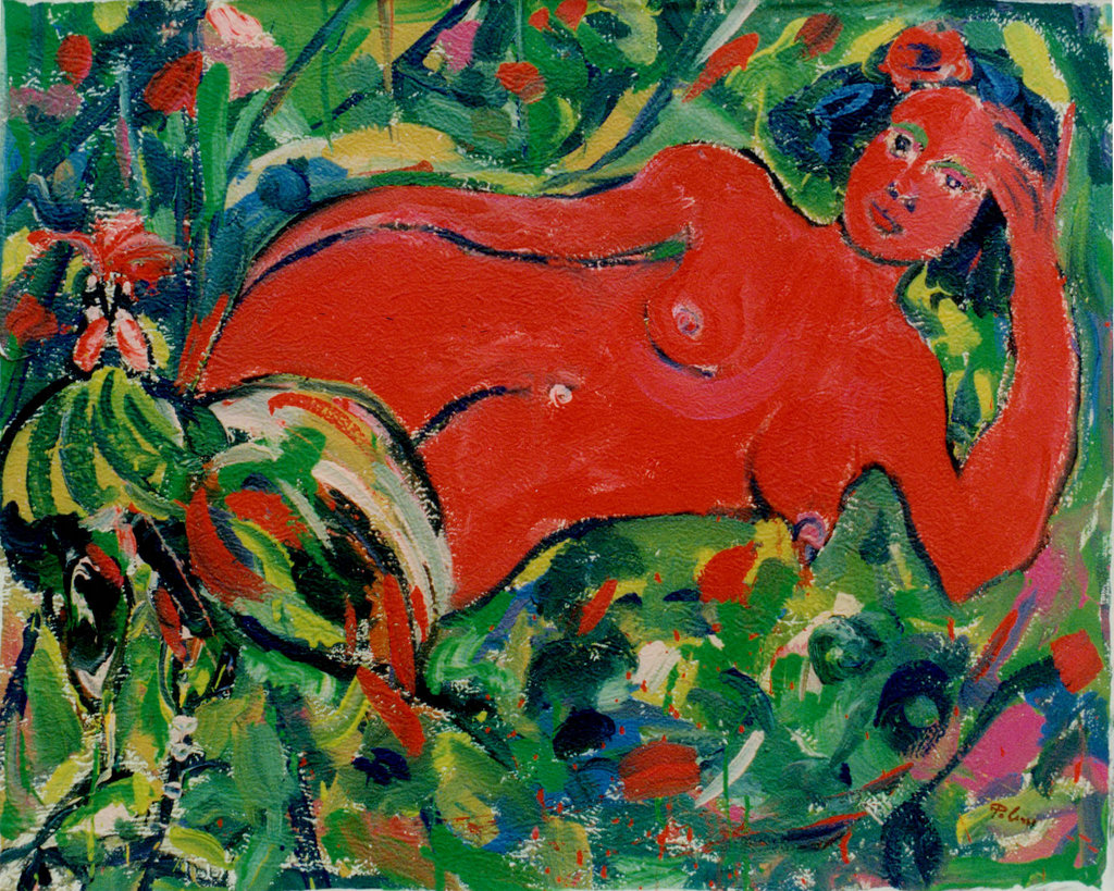 Roberto Poloni "Nudo nella foresta" 2001 olio su tela cm 70x90 Autentica dell'artista su foto