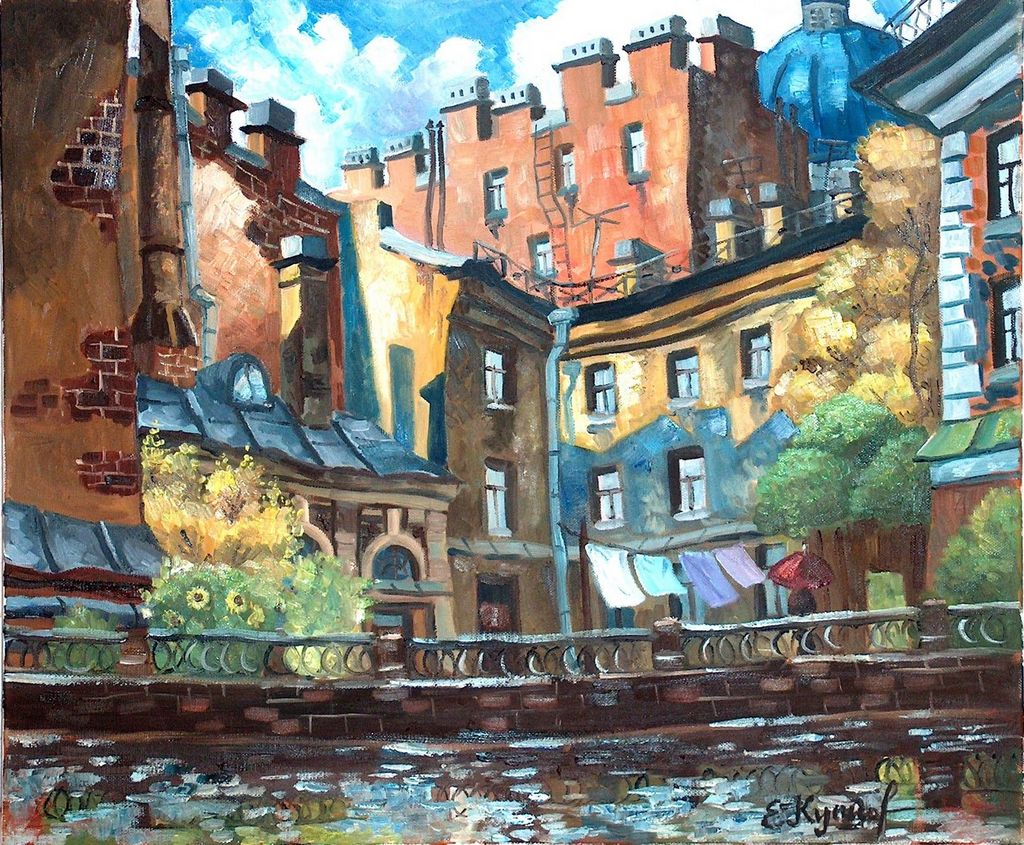Eghor Kouptsov "Canale di San Pietroburgo" olio su tela cm 46x55 Autentica su foto della Galleria L'Alfiere Arte-TO