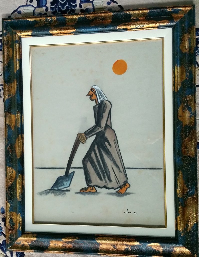 Pietro Morando "L'aratrice" Tecnica mista su cartoncino cm 75x55 opera finemente incorniciata Aut. su foto Galleria l'Alfiere Arte-TO