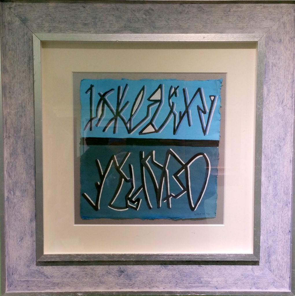 Riccardo Licata "Stilemi" 2001 olio su carta spagnola cm 30x30 opera finemente incorniciata Autentica dell'artista su foto
