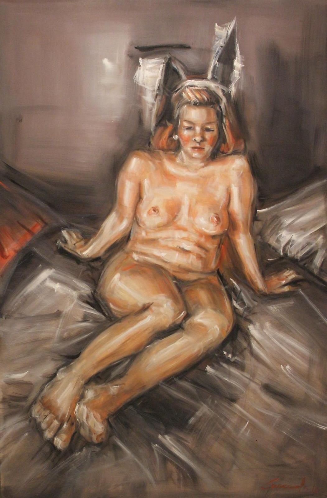 Lotto 127 | Loredana Cacucciolo "Le lapin blanche" olio su tela cm 120x80 Autentica su...
