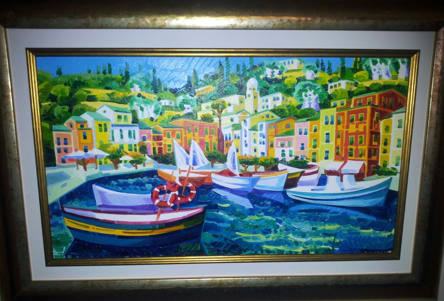 Athos Faccincani"portofino" olio su tela cm 40x70.Autentica dell?artista su foto