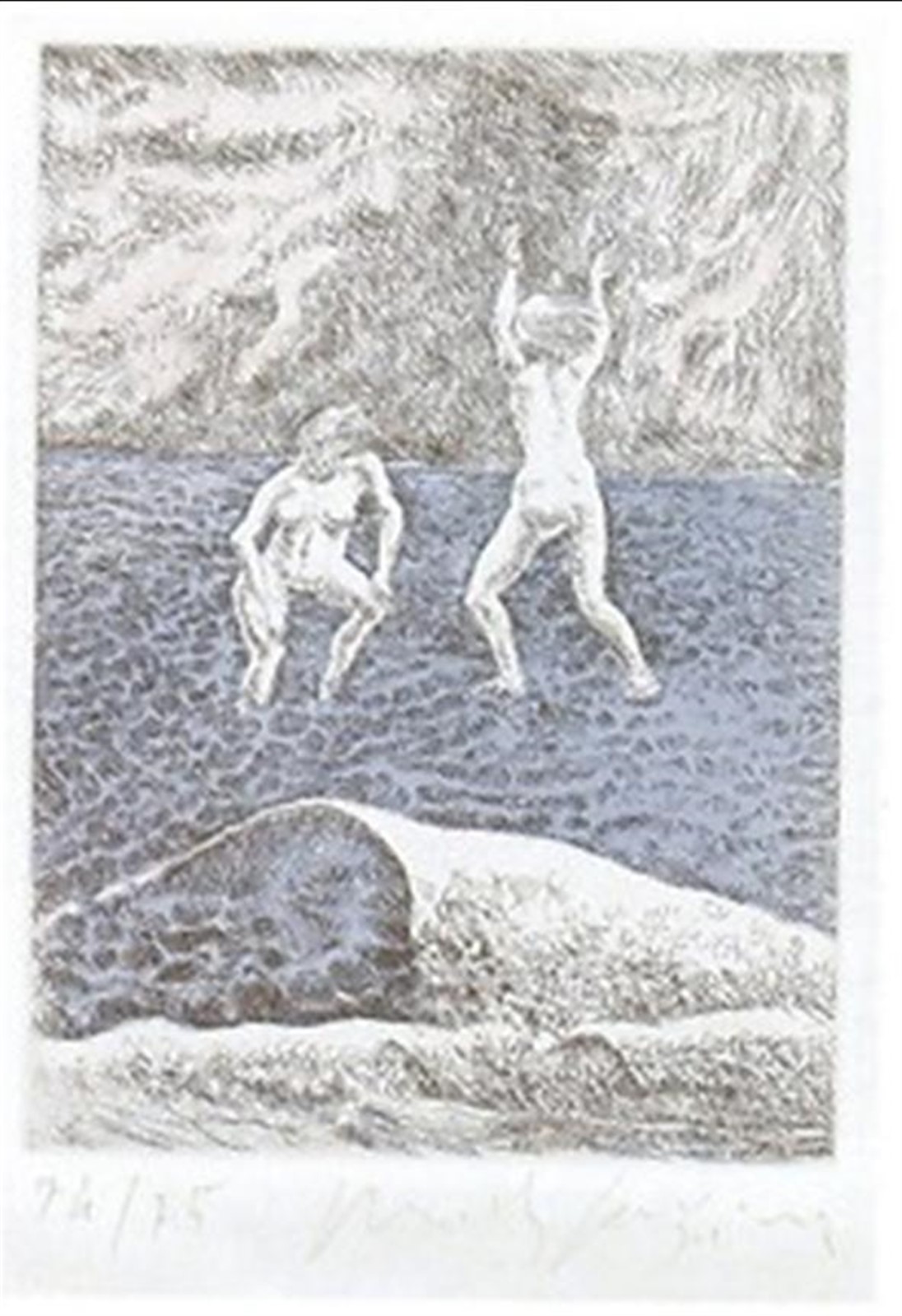 FAZZINI PERICLE (1913 - 1987) Le bagnanti. Acquaforte, acquatinta. Cm 50,00 x 70,00. 64/75. Tiratura e firma a matita in basso. Dimensione lastra: 24 x33 cm. Con garanzia Edizioni Bora.
