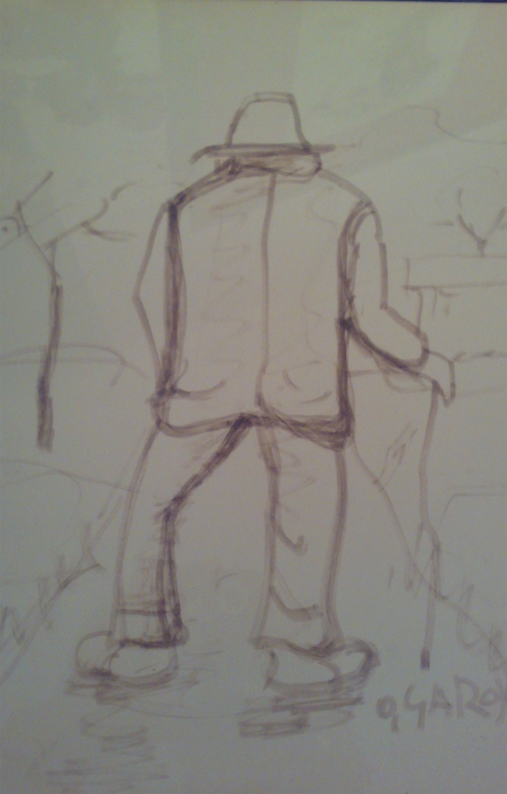 GAROSIO OTTORINO (1904 - 1980) Viandante. Disegno su carta. Cm 23,00 x 33,00. Firma in basso a destra.