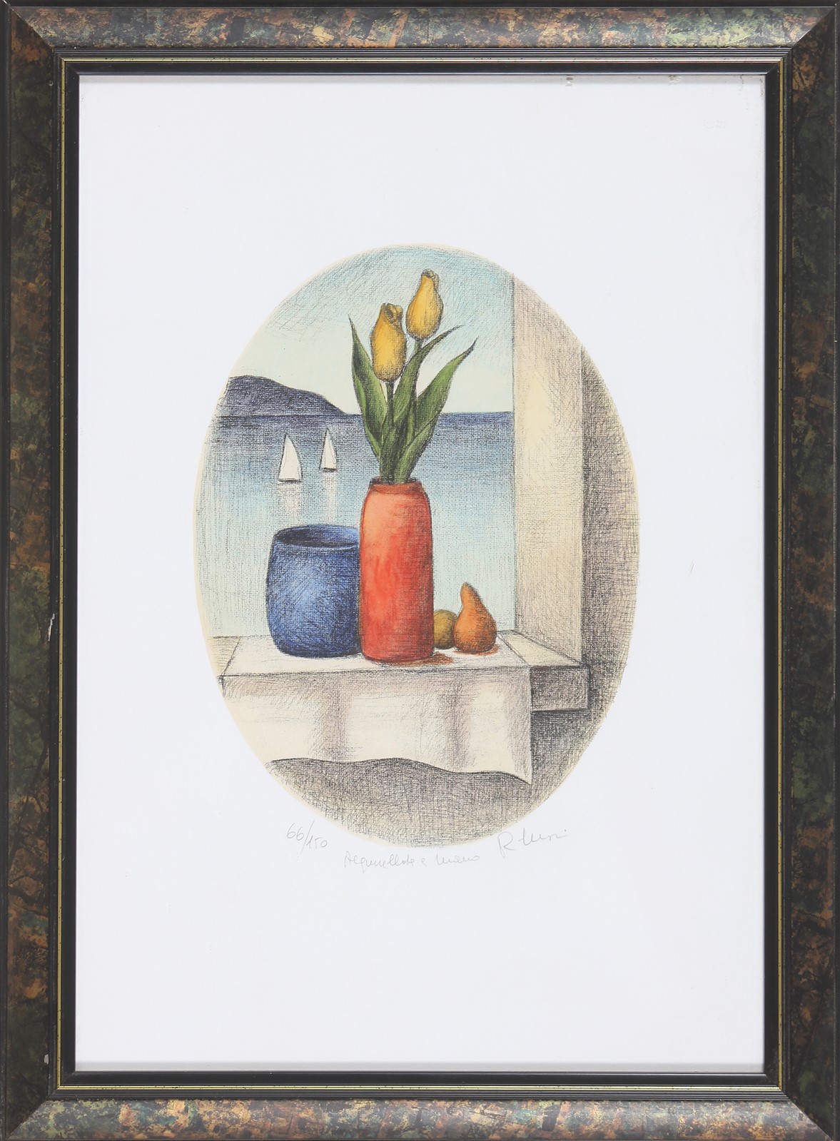 Lotto 56 | MASI ROBERTO (1940 - 2011) Vasi sulla finestra. Litografia ritoccata a mano....