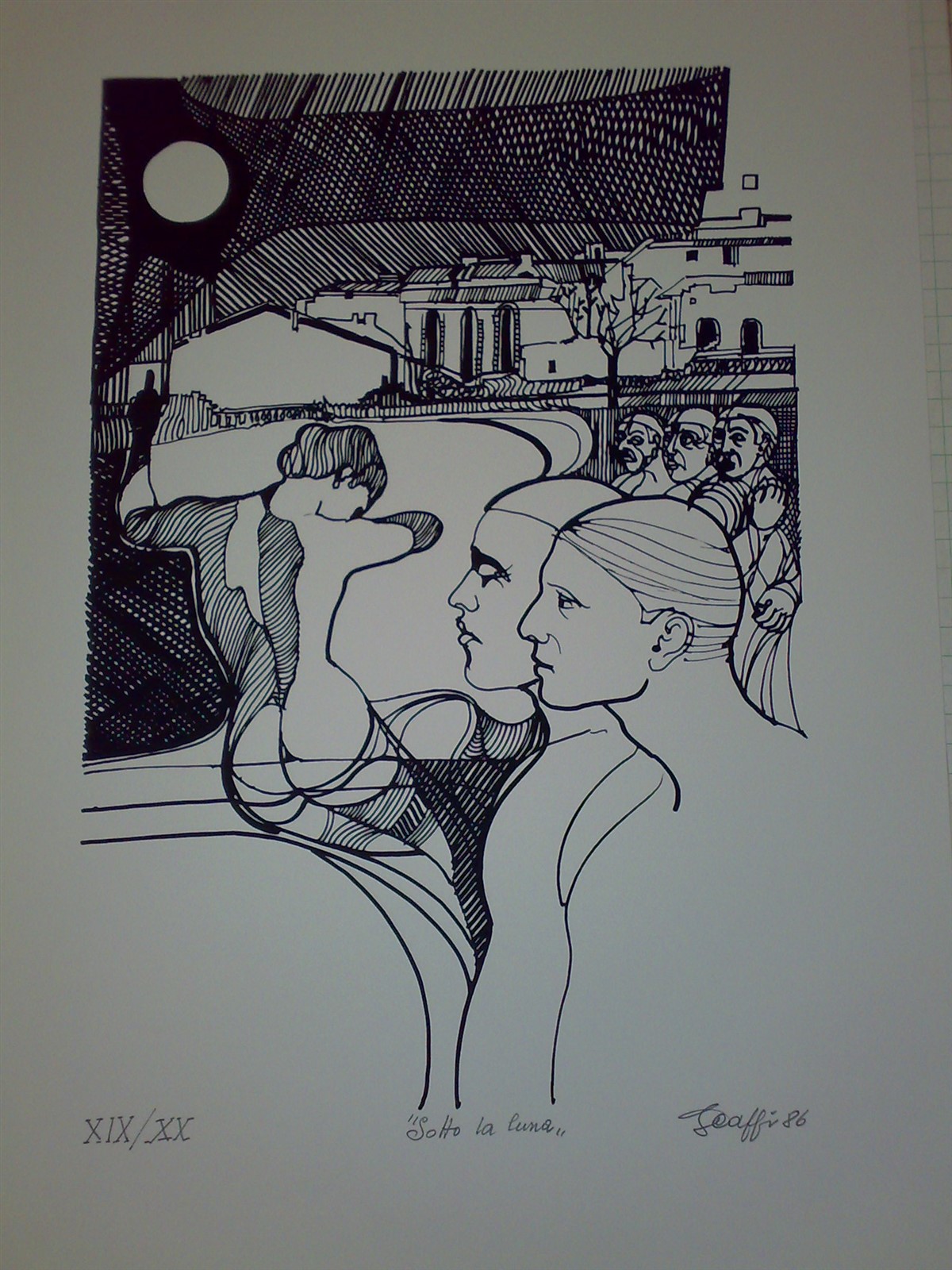 CAFFI GIANFRANCO (n. 1937) Sotto la luna. 1986. Serigrafia. Cm 49,00 x 34,00....