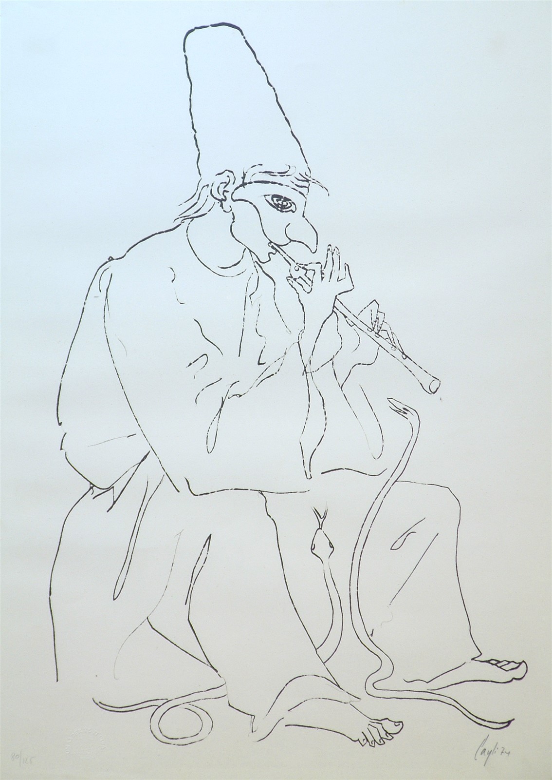 CAGLI CORRADO (1910 - 1976) Pulcinella incantatore. 1974. Serigrafia. Cm...