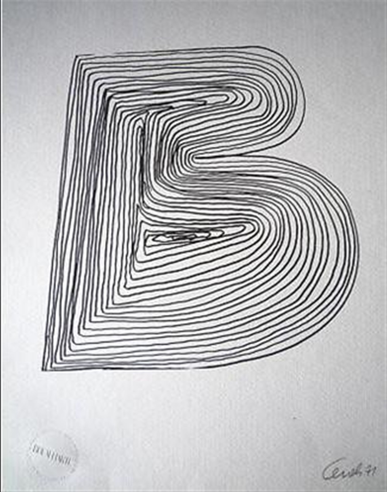 CEROLI MARIO (n. 1938) Lettera B. . 1972. Fotolitografia. Cm 23,00 x 30,00. 470/5000. Firma e anno in basso a destra. Timbro a secco Bolaffiarte in basso a sinistra.