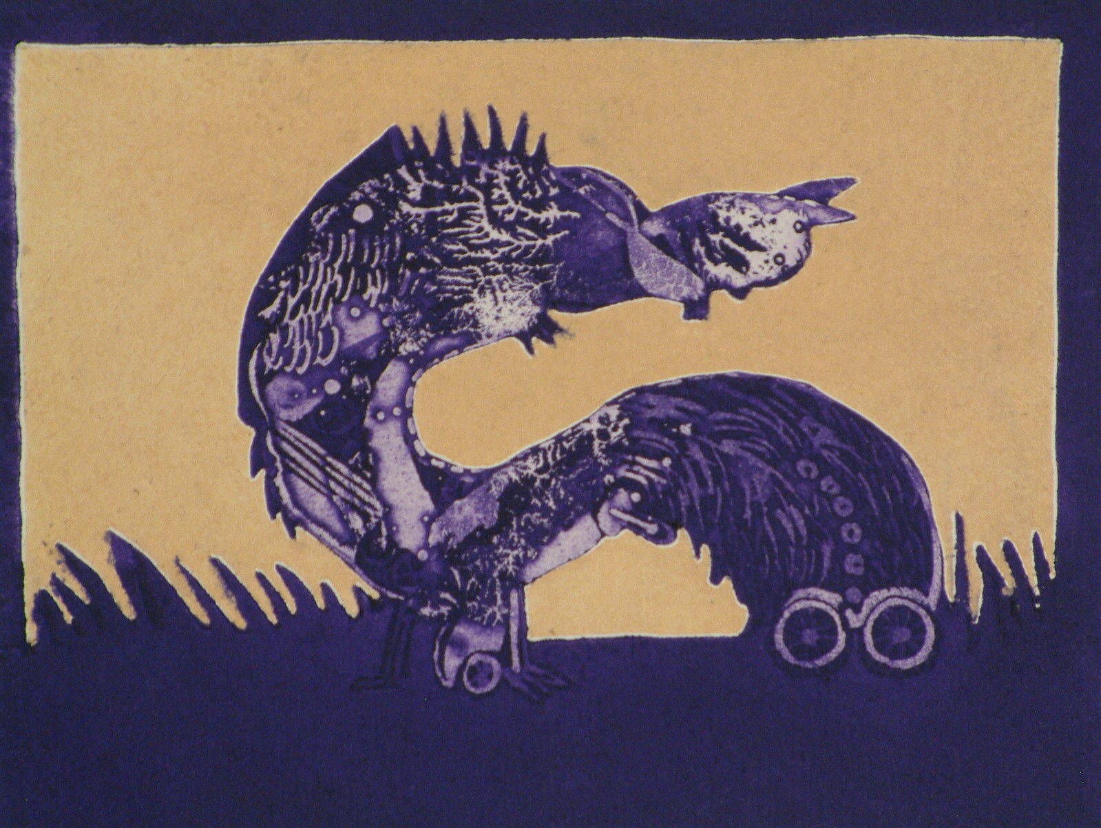 DI PIERI GINO (n. 1946) Senza titolo. 1978. Acquaforte, acquatinta. Cm 24,00 x 17,80. 23/50. Tiratura, firma e anno a matita in basso. Presente poesia in lingua Cimbra su carta Magnani di Pescia. Ed. Barbacan di Treviso. Presente cartella originale con traduzione e dedica in italiano e tedesco.