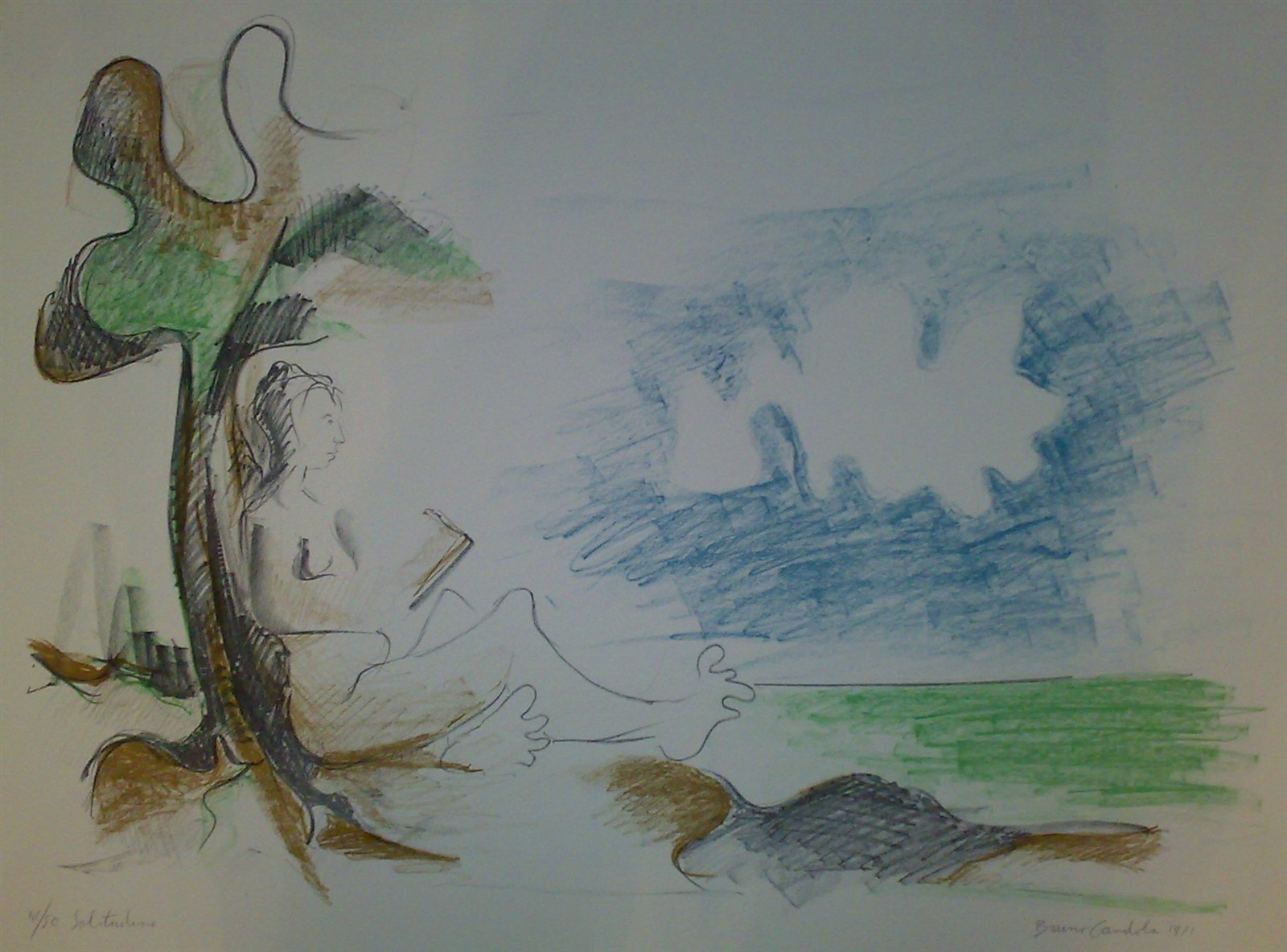 GANDOLA BRUNO (n. 1940) Solitudine. 1971. Litografia. Cm 70,00 x 50,00. 42/50. Tiratura, titolo, firma e anno a matita in basso.
