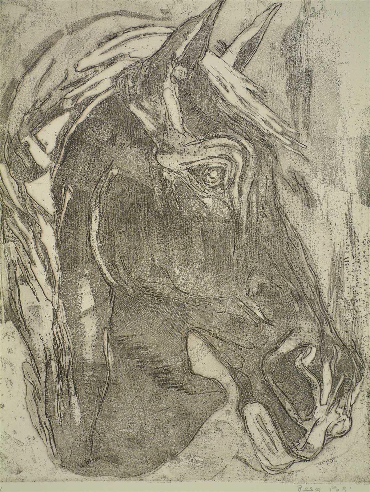 POLI ROSA ( XX SEC. ) Cavallo. 1974. Acquaforte. Cm 50,00 x 70,00. 29/31. Tiratura e firma a matita in basso.Timbro a secco a cura della Stamperia del Cappello, Verona.