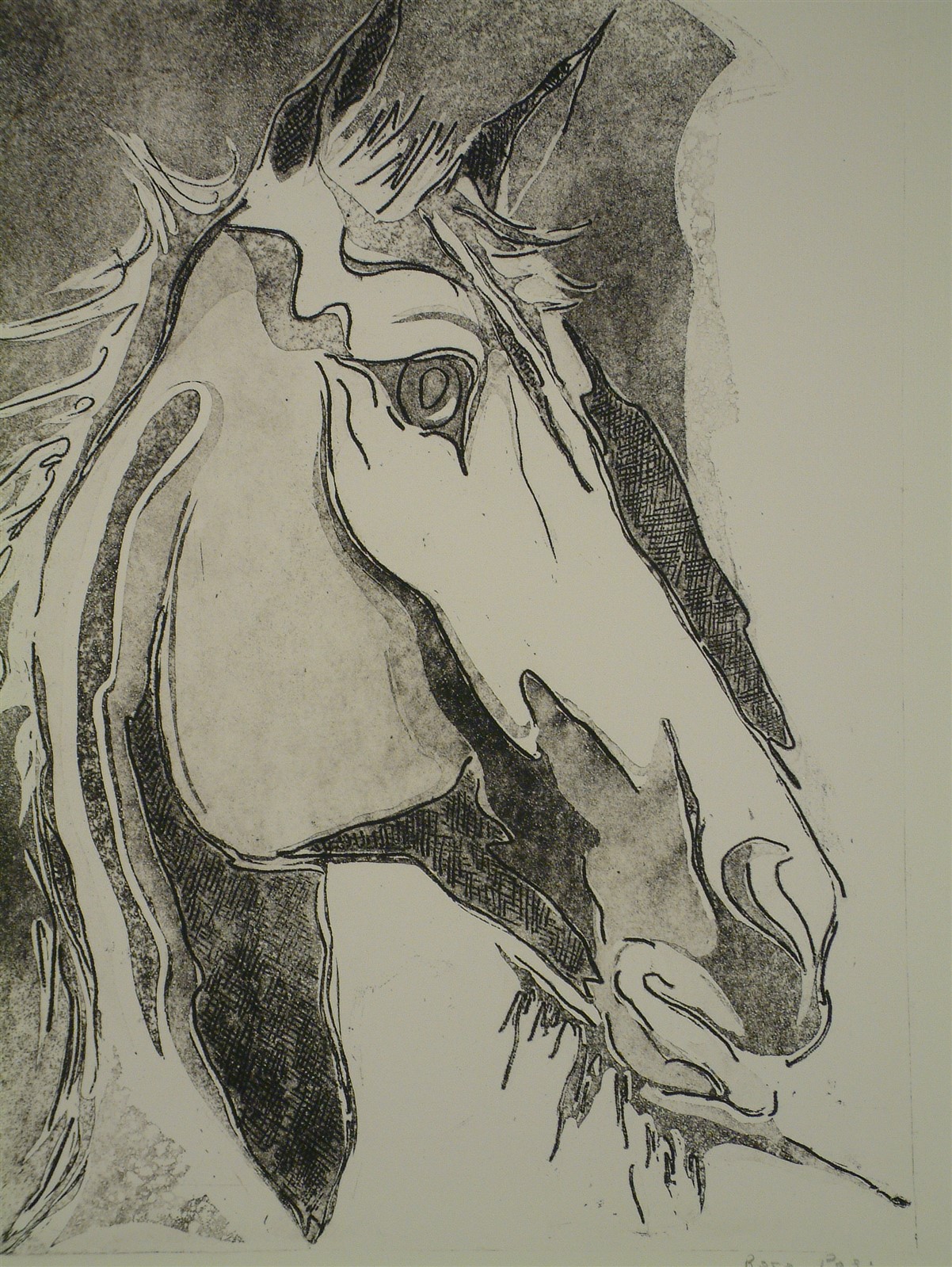 POLI ROSA ( XX SEC. ) Cavallo. 1974. Acquaforte. Cm 50,00 x 70,00. 29/31. Tiratura e firma a matita in basso. Timbro a secco a cura della Stamperia del Cappello, Verona.
