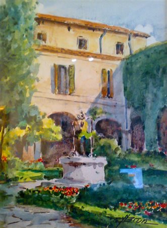 BRUN NAPOLEONE Il giardino di Giulietta. 1973. Acquarello su carta. Cm 40,00 x 30,00. Firma in basso a destra.